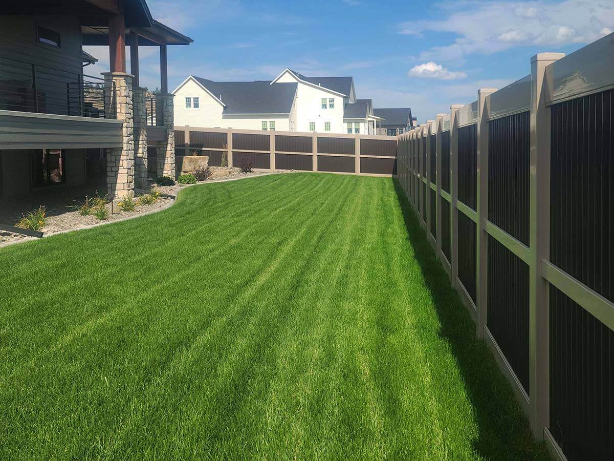 Our corrugated steel fences are made with a vinyl framework, including strong vinyl posts made of nonporous PVC materials. Your vinyl posts can be framed with a cedar or Diamond Kote trim for added customization.