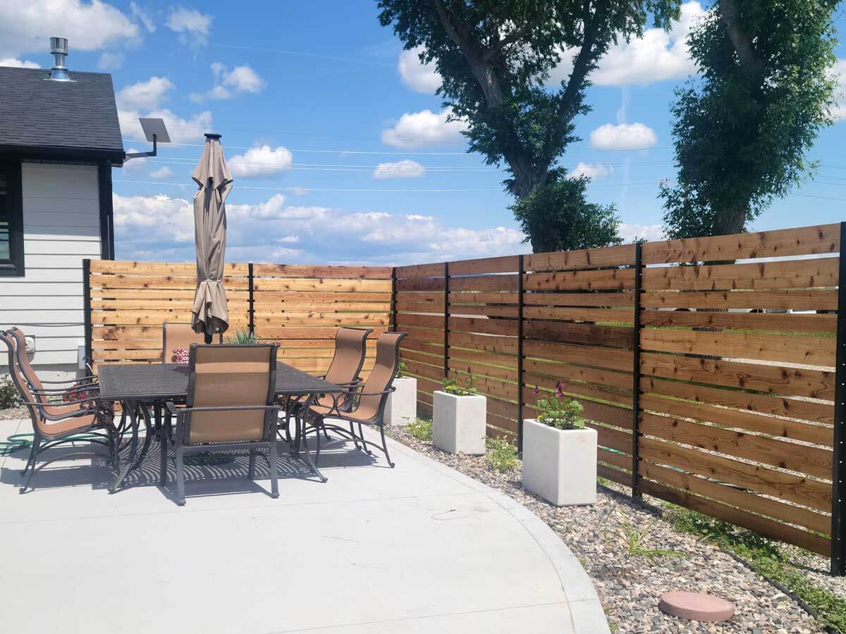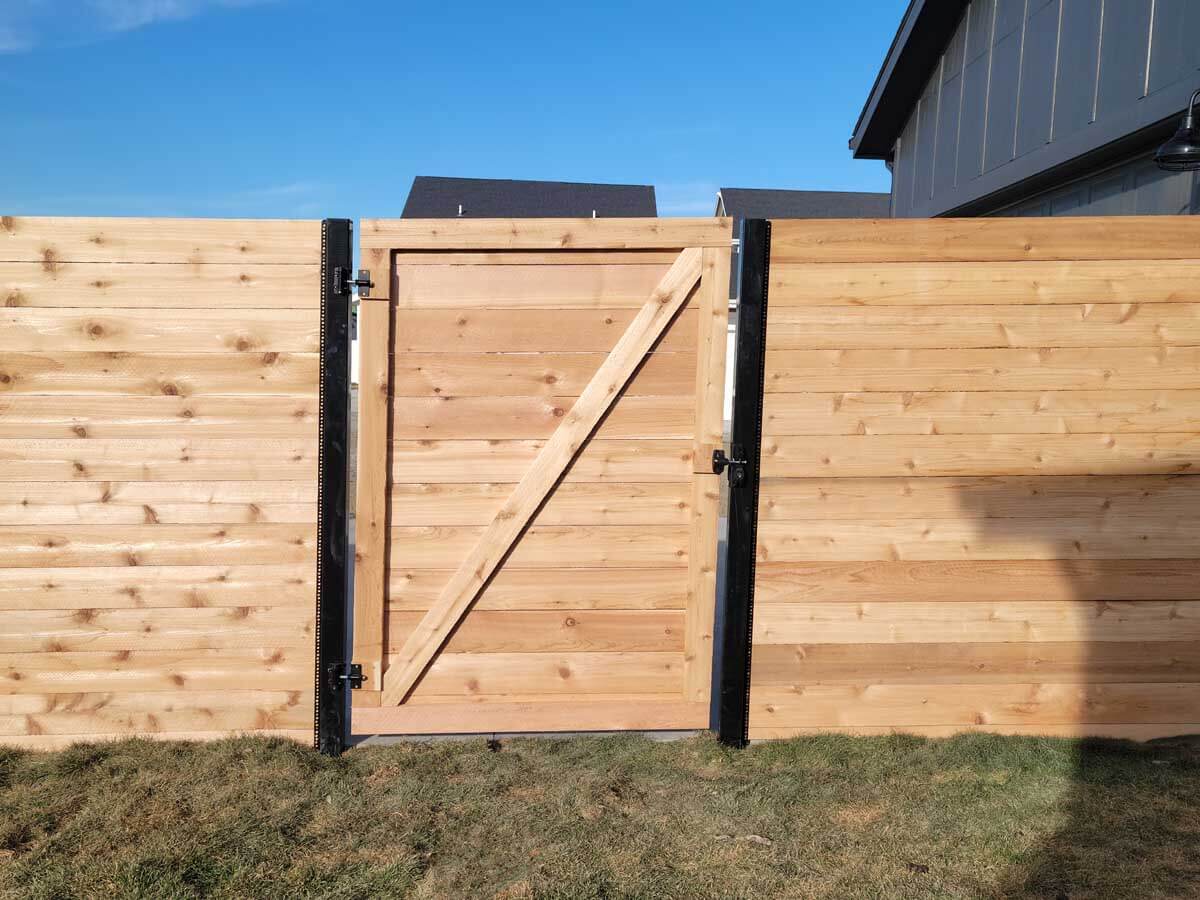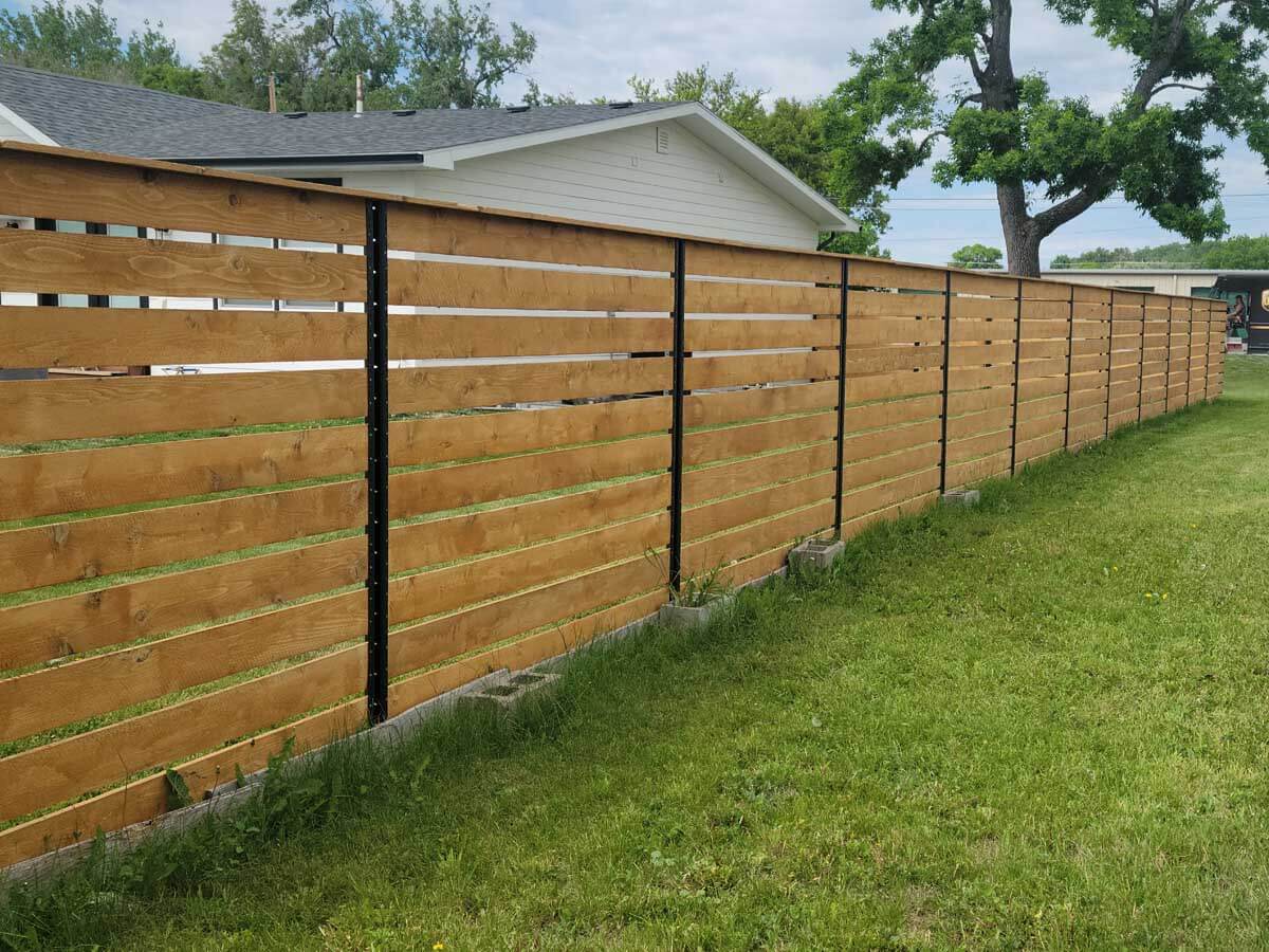 Black Corrugated Steel Fence with Wood Posts and Cap and Trim Installation Company