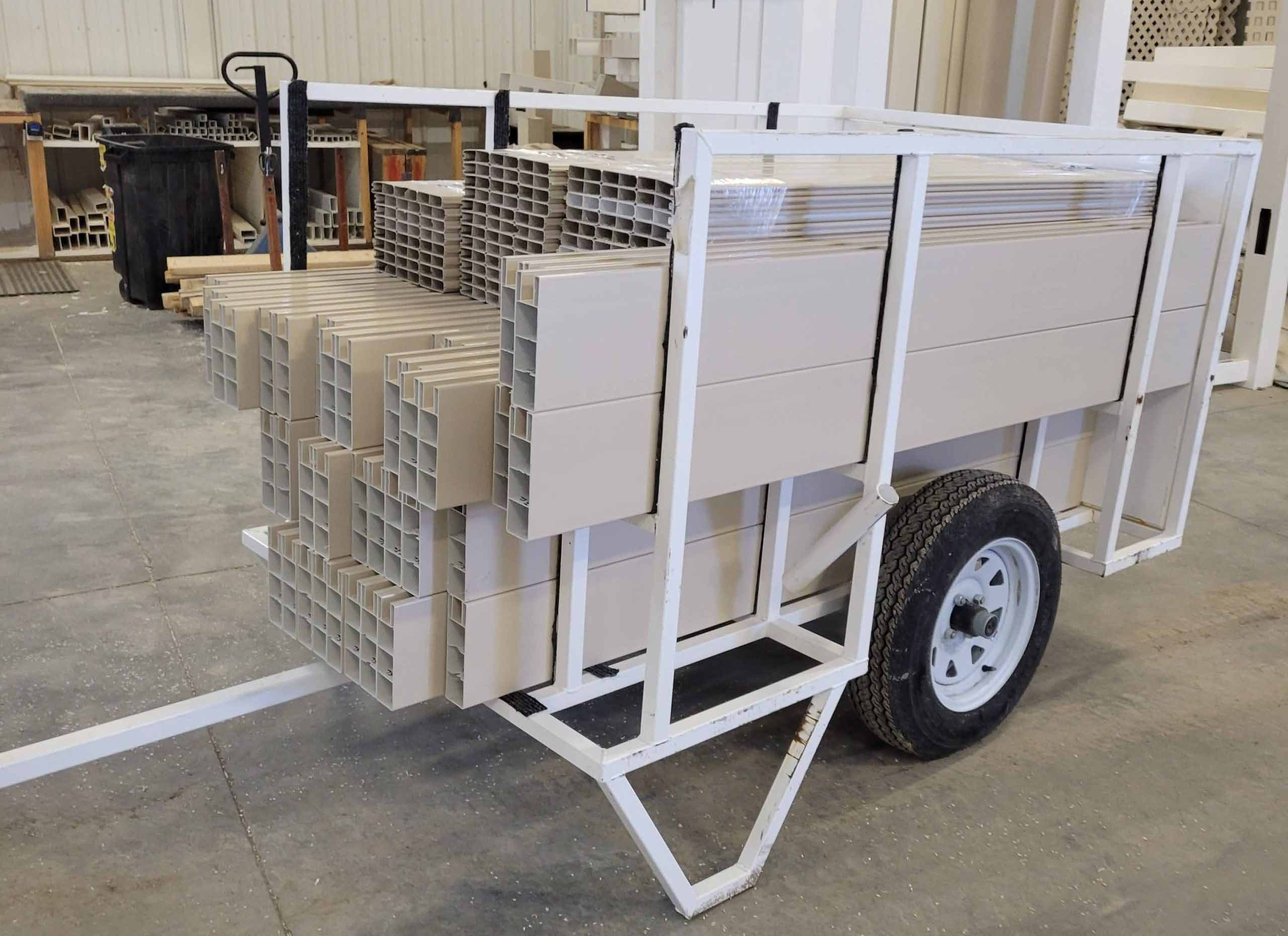 The Beast is a versatile cart that holds 6-foot material. It can haul up to 78 2x7-inch rails or 39 panels of privacy fence rails (that's almost 250 feet of fence!), and at 44-inches wide, The Beast can easily slip through almost any opening.