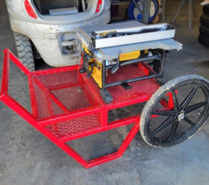 Are you tired of bending down to pick up the table saw, moving it a few feet, then bending over again to rip out TnG? If so, The Goat 3rd Man fence hauling cart is your go-to solution.